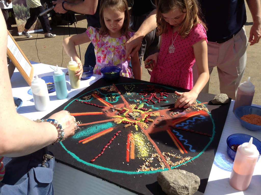 | The mandala is gathered up and later offered to the Willamette River to send our prayers to all directions. |